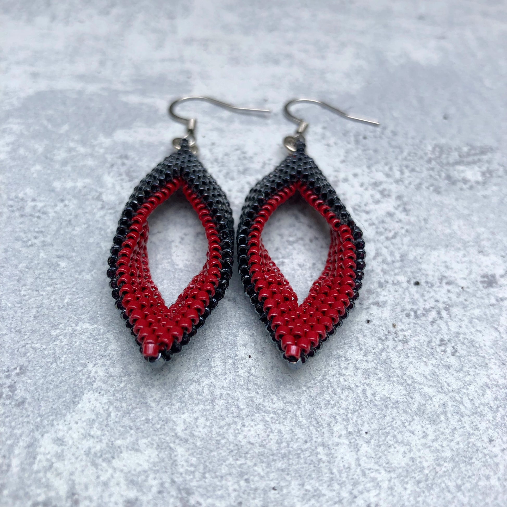 Perlenohrringe in Tropfenform in Anthrazit und Rot